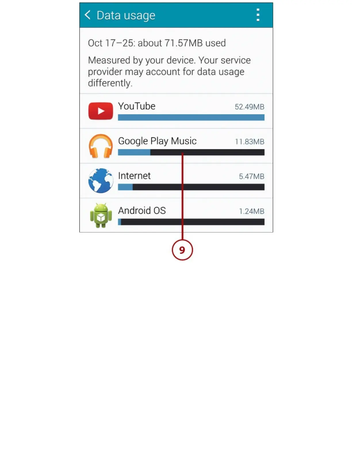 1.LookattheDataUsagecharttoseethedatausageforthisappspecifically.