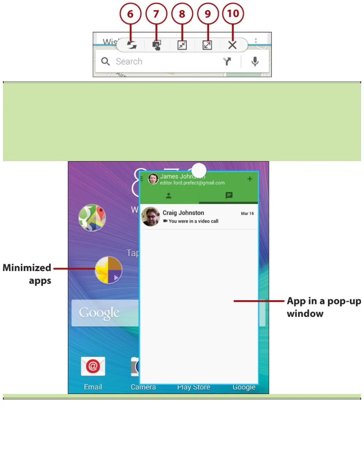 screen.Youcandragtheminimizedappanywhereonthescreen.Ifyoutouchandholdtheapp,a