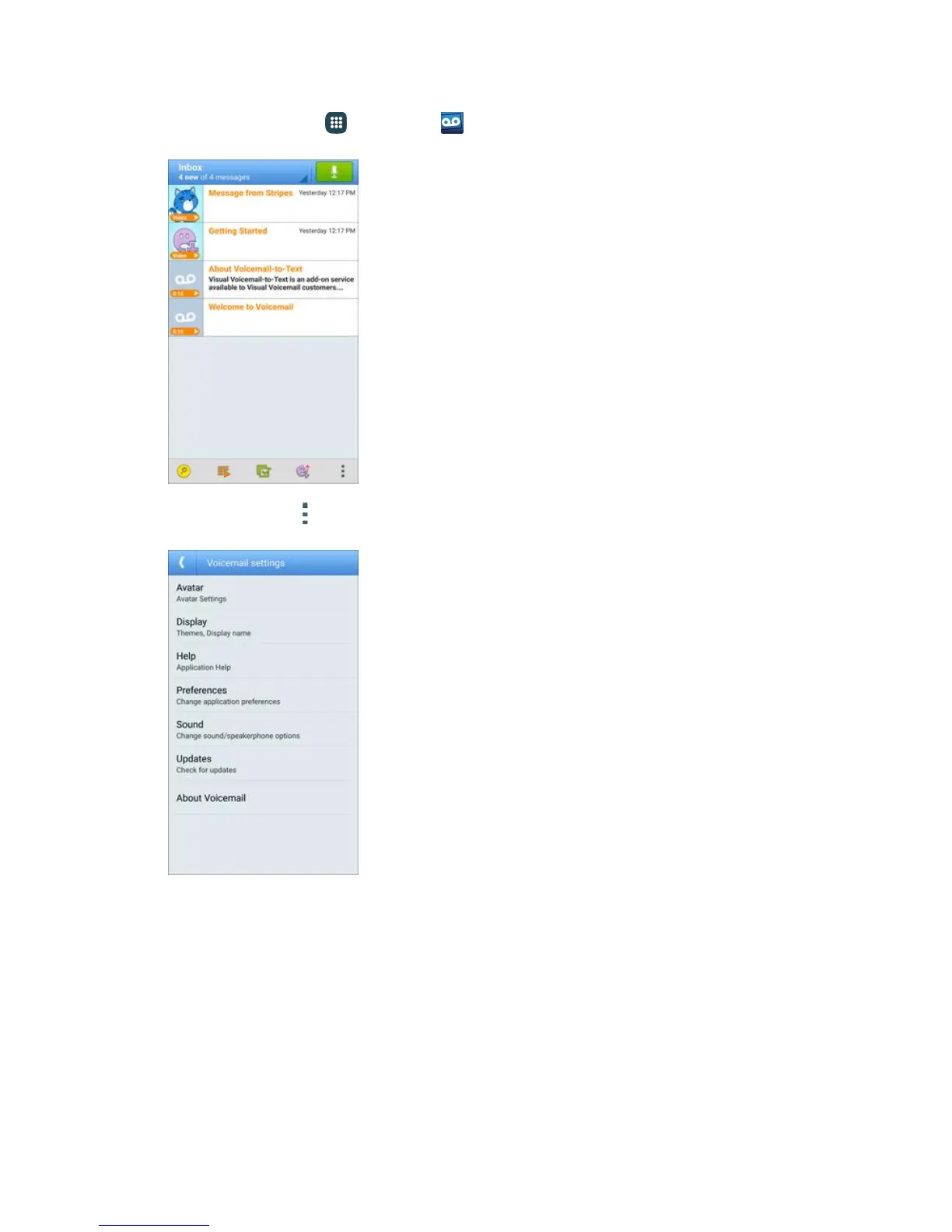 Display: Change your voicemail message theme and enter a name to identify yourself to