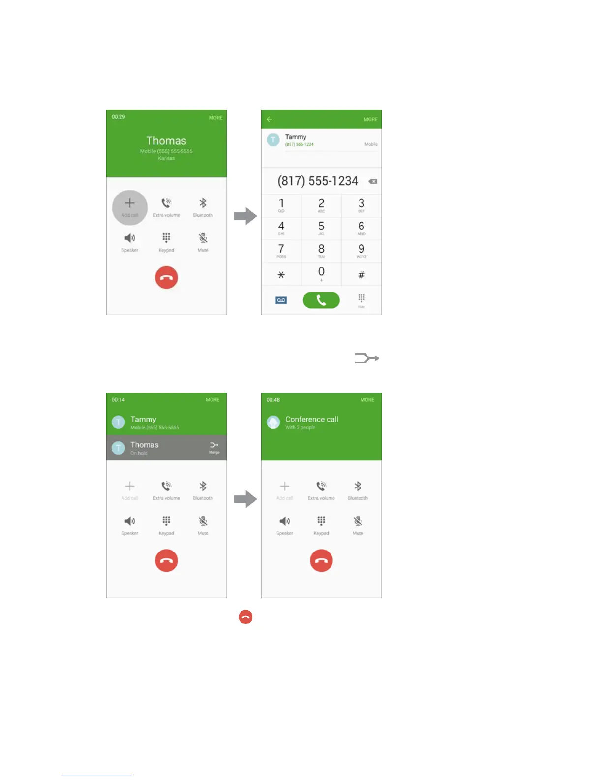 Note: If one of the people you called hangs up during your call, you and the remaining caller stay