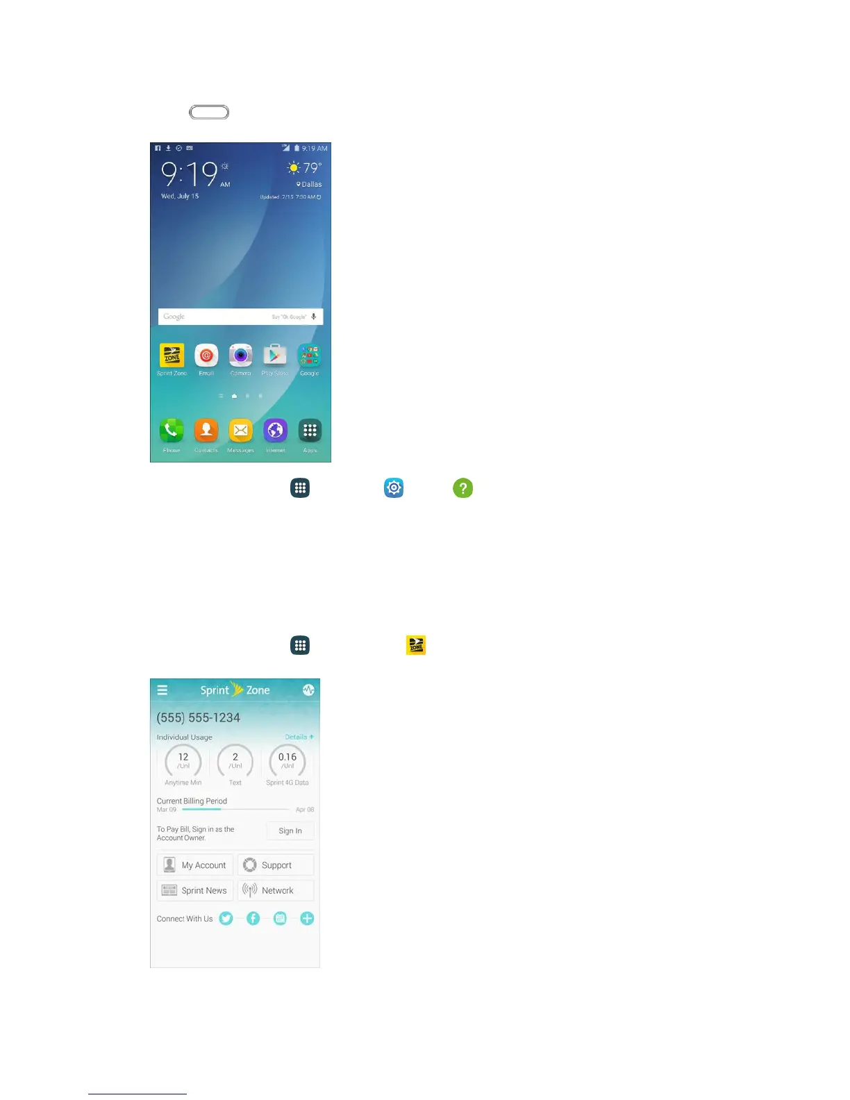 1. From home, tap Apps > Sprint Zone .