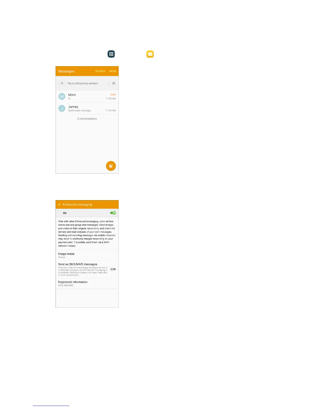 2. Tap More > Settings > Enhanced messaging. Enhanced feature screen displays where you