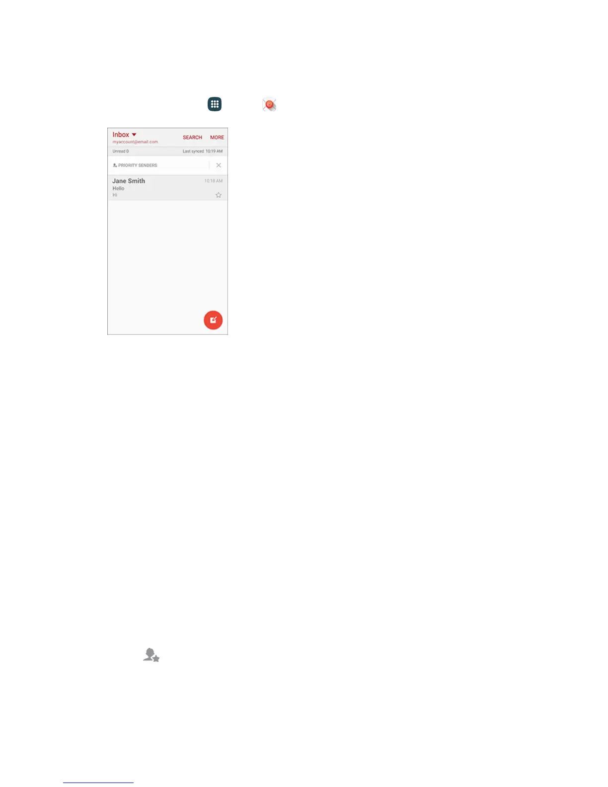 1. On the email account inbox, tap Priority senders.