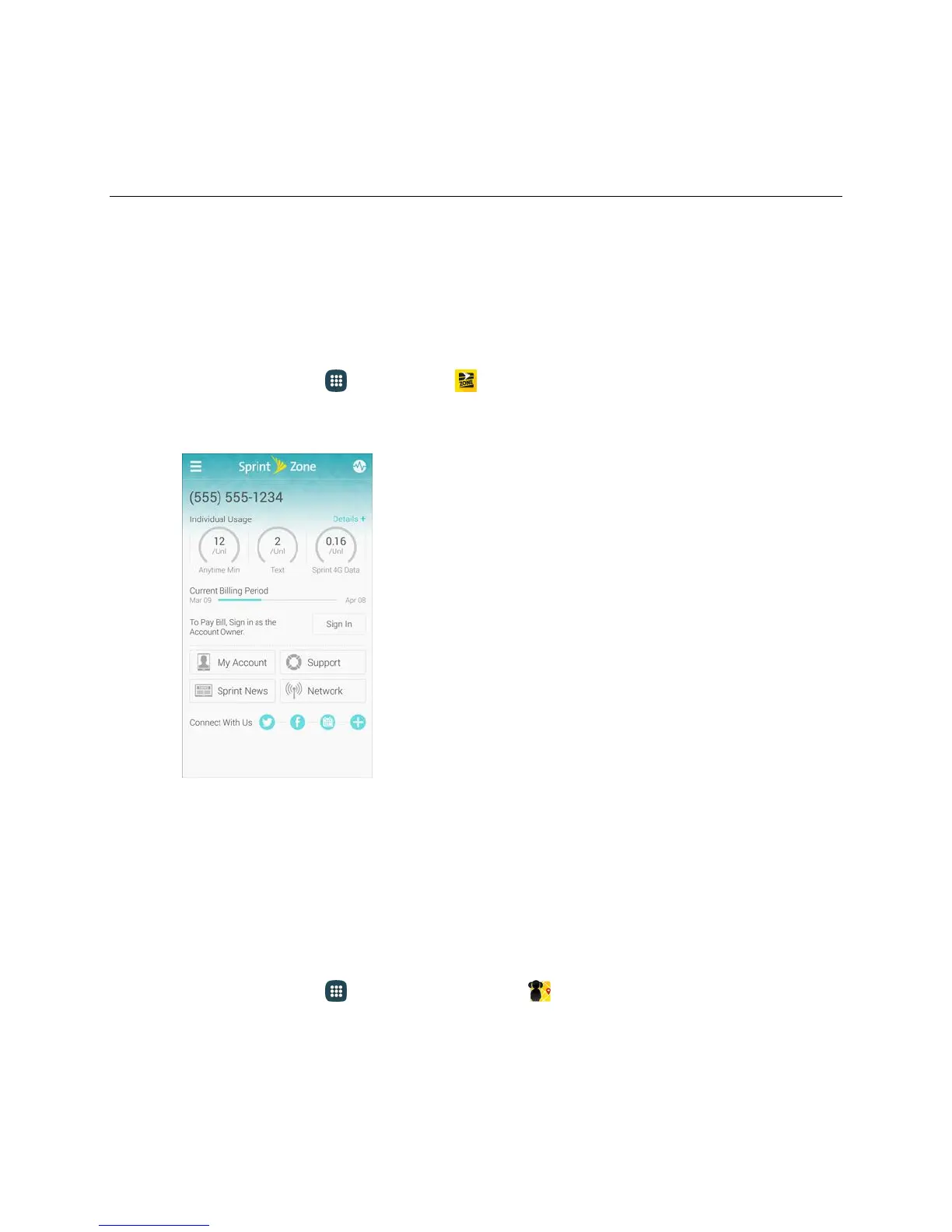■ From home, tap Apps > Sprint Zone .