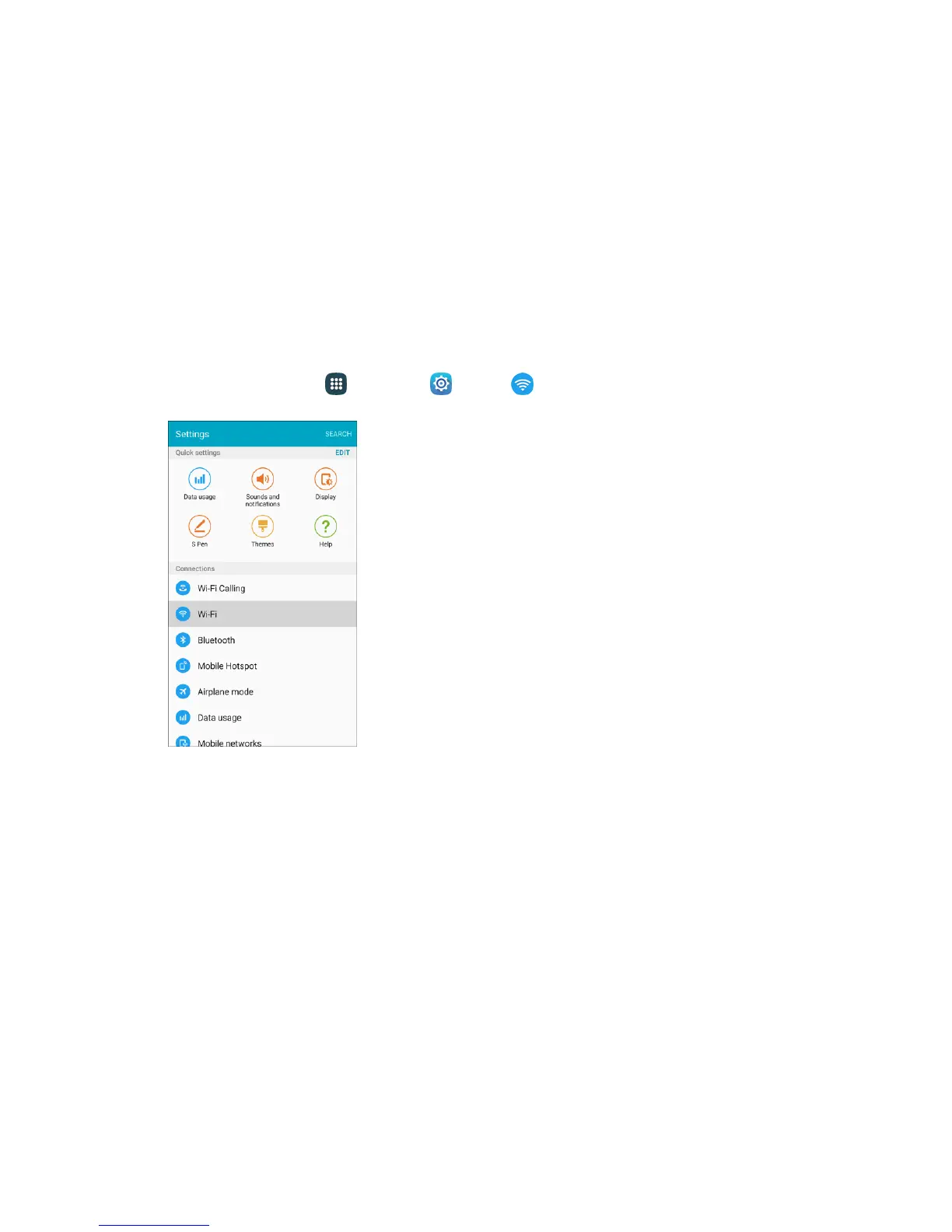 Use the Connections setting menu to enable your phone’s Wi-Fi radio and connect to an available Wi-Fi