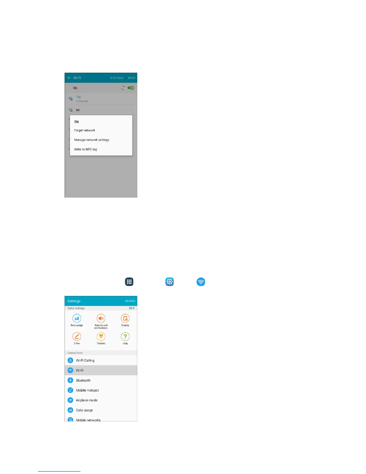 2. Press and hold the name of the connected access point, and then tap Forget network.