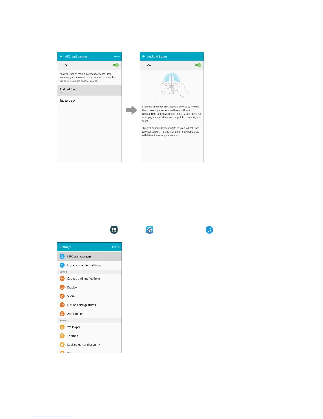 1. From home, tap Apps > Settings > NFC and payment .