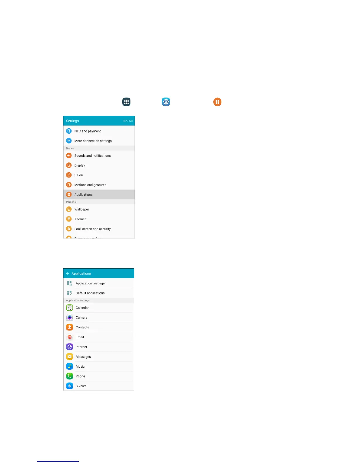 1. From home, tap Apps > Settings > Applications .