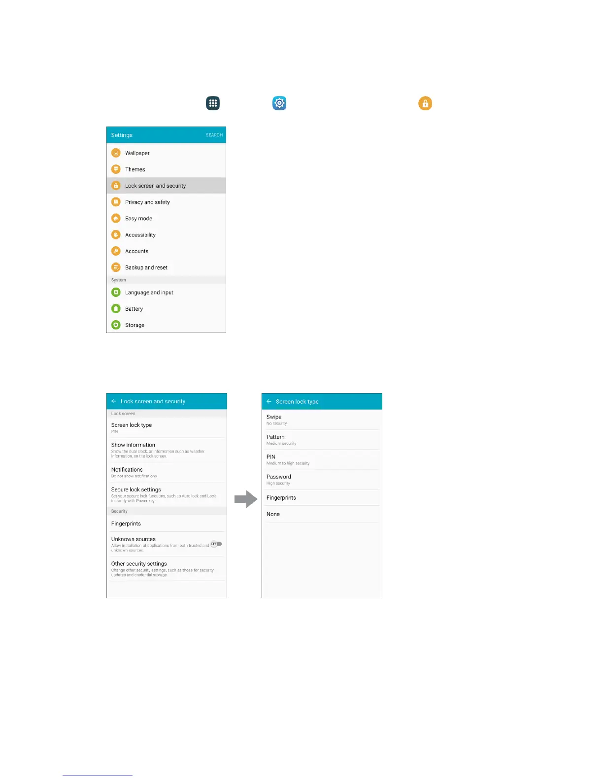 Access Screen Lock Settings