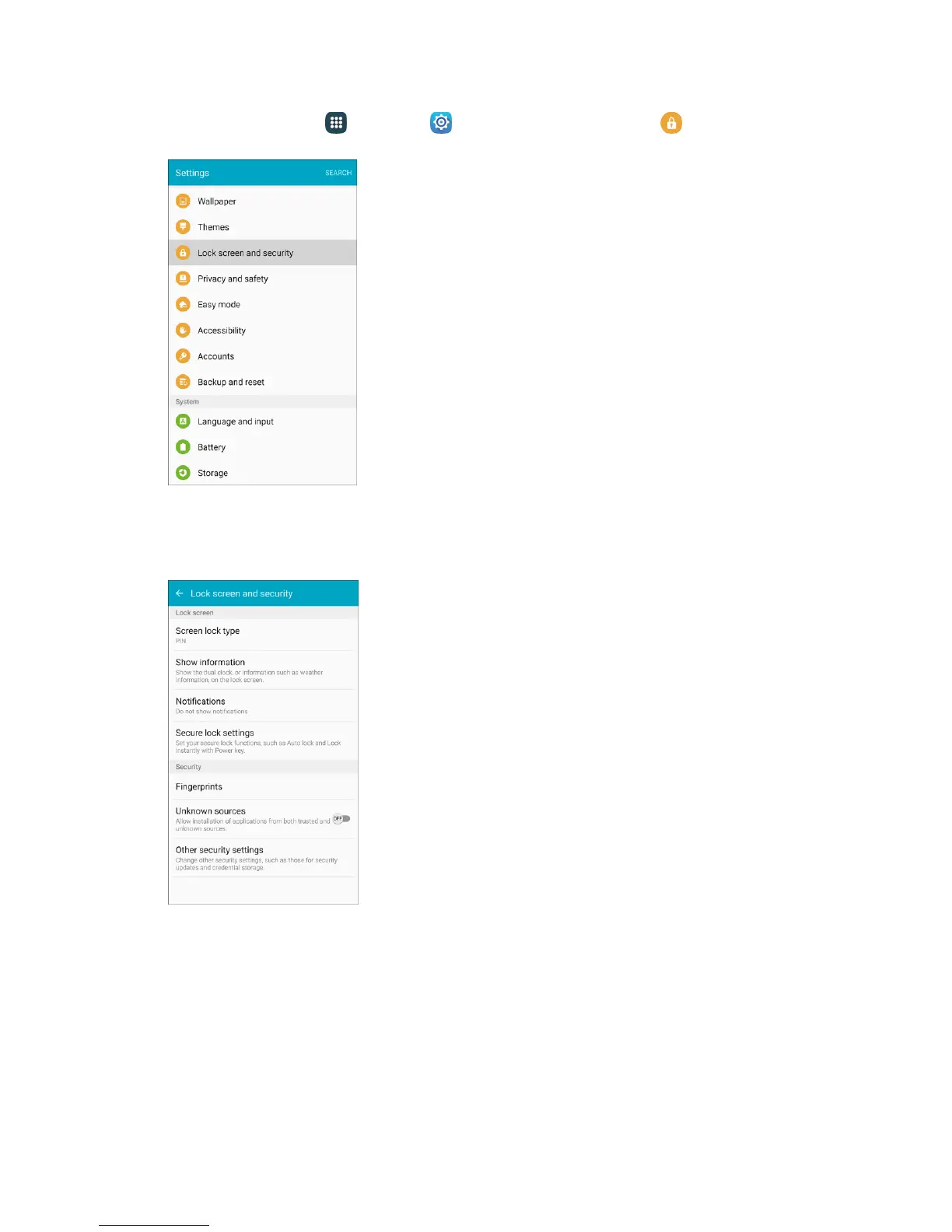 1. From home, tap Apps > Settings > Lock screen and security .