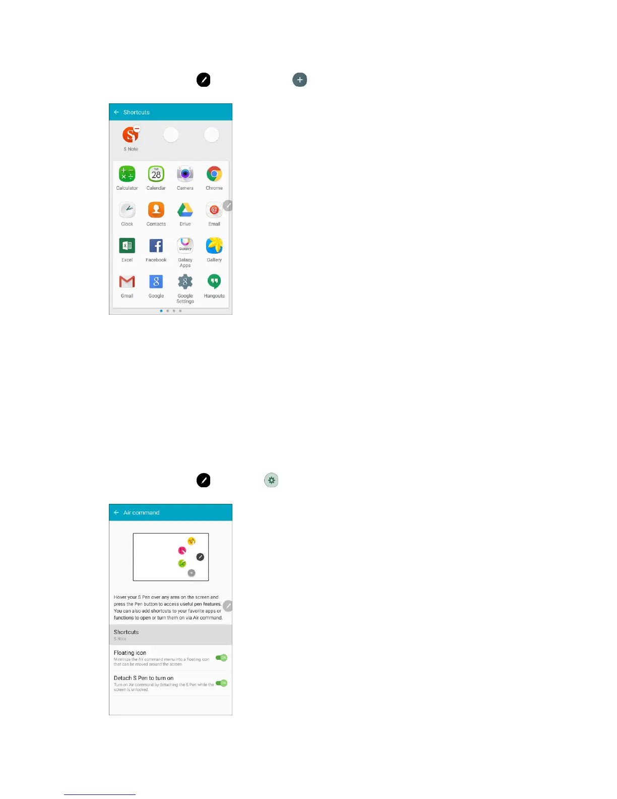 appears, and press the S Pen button once.