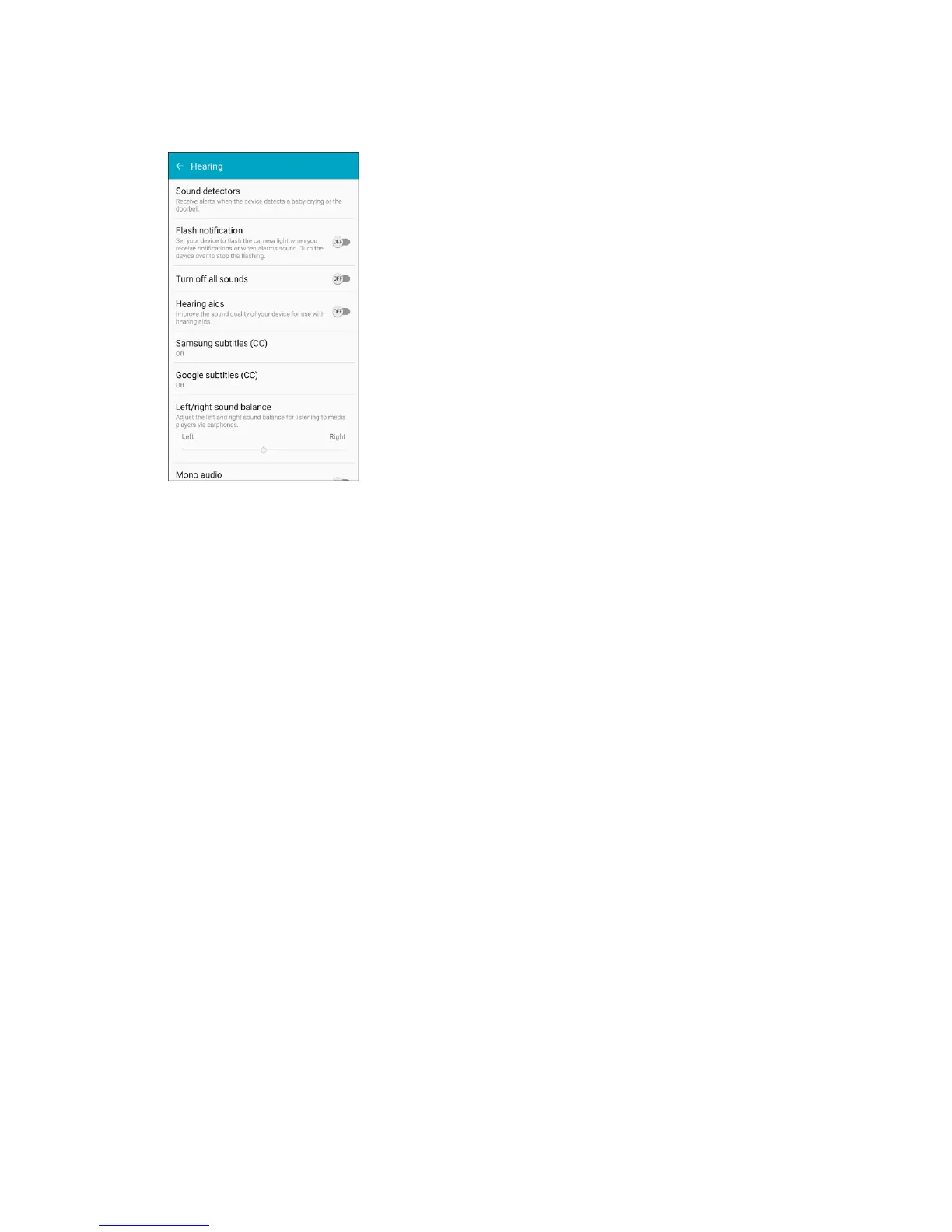 Left/right sound balance: Adjust the sound sent to the left and right when using earphones.