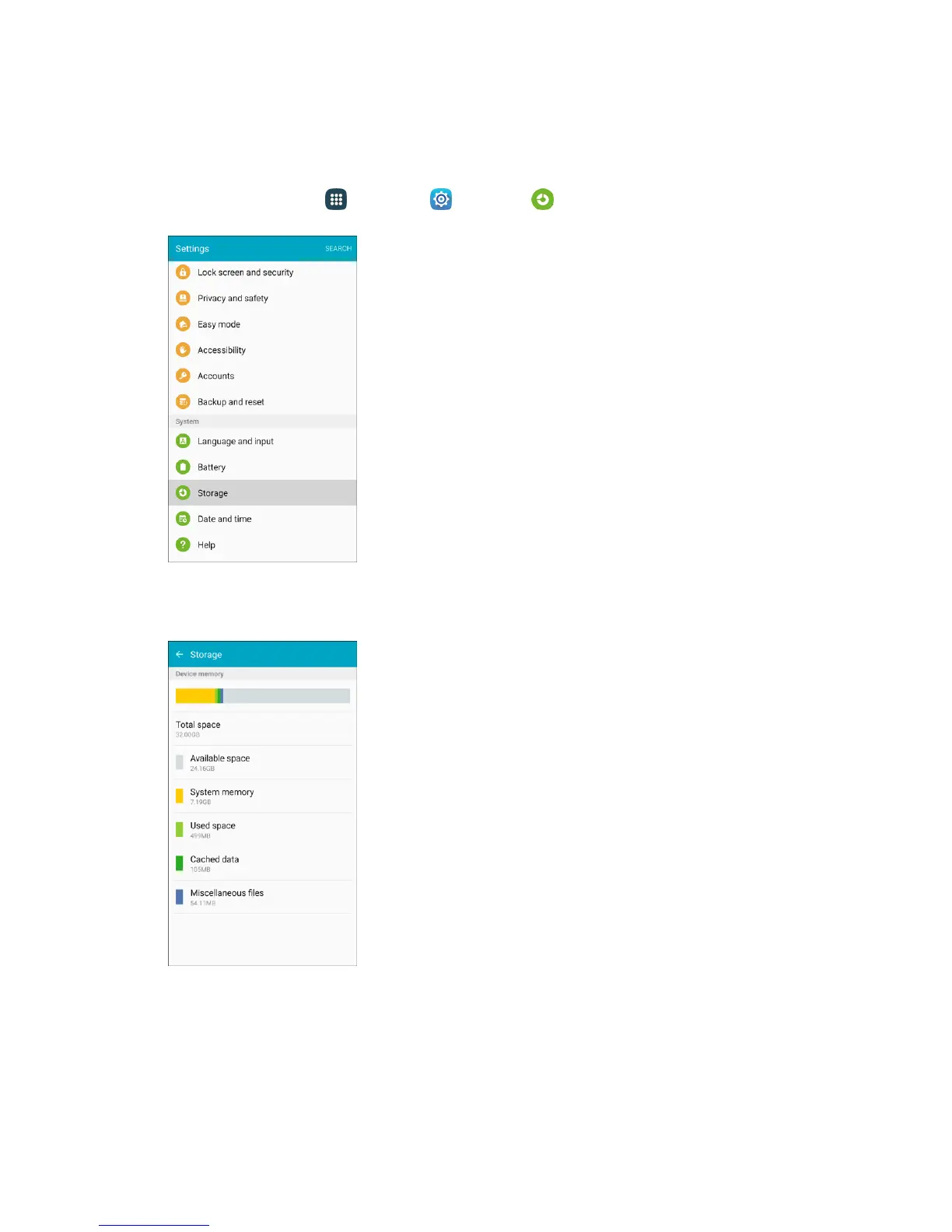 1. From home, tap Apps > Settings > Storage .