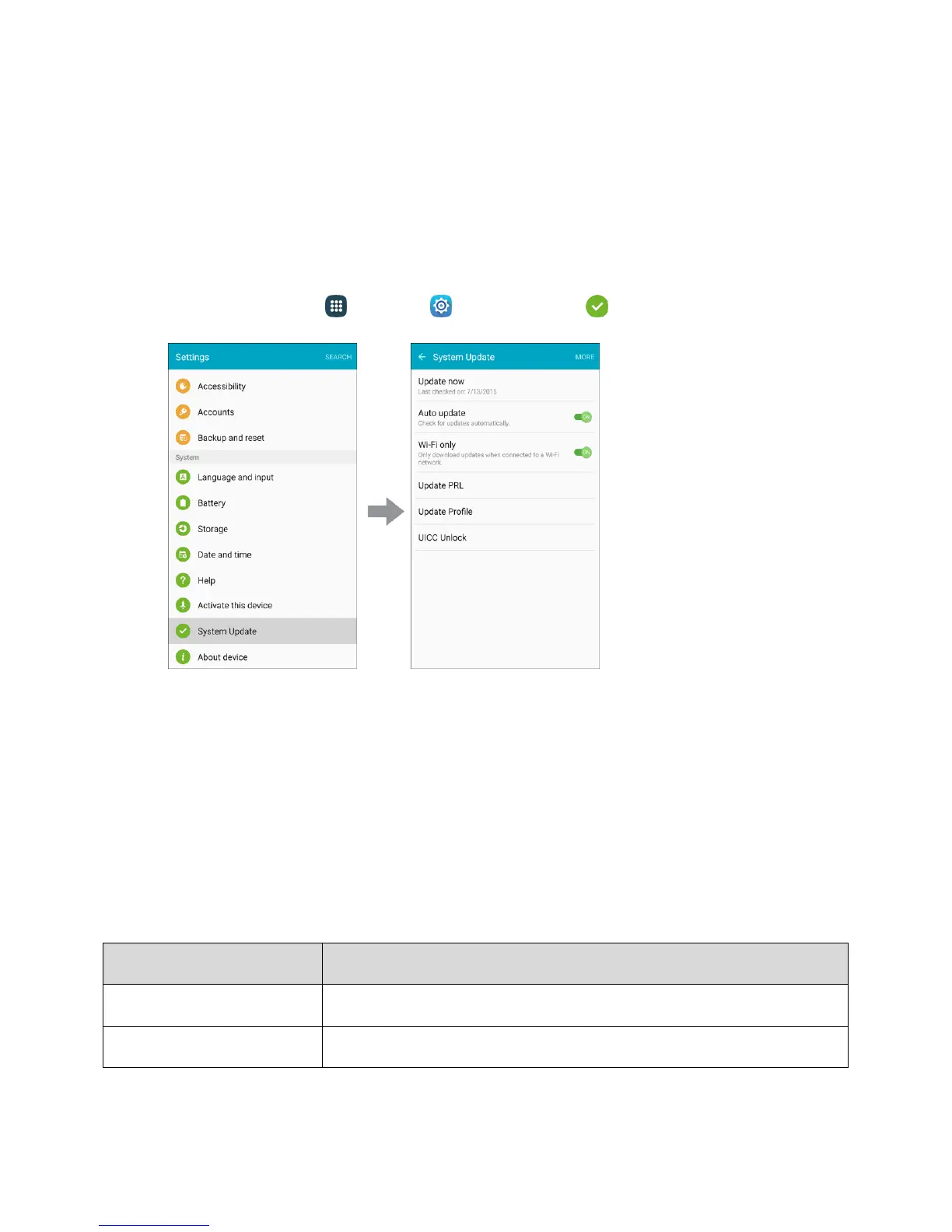 ■ From home, tap Apps > Settings > System Update .