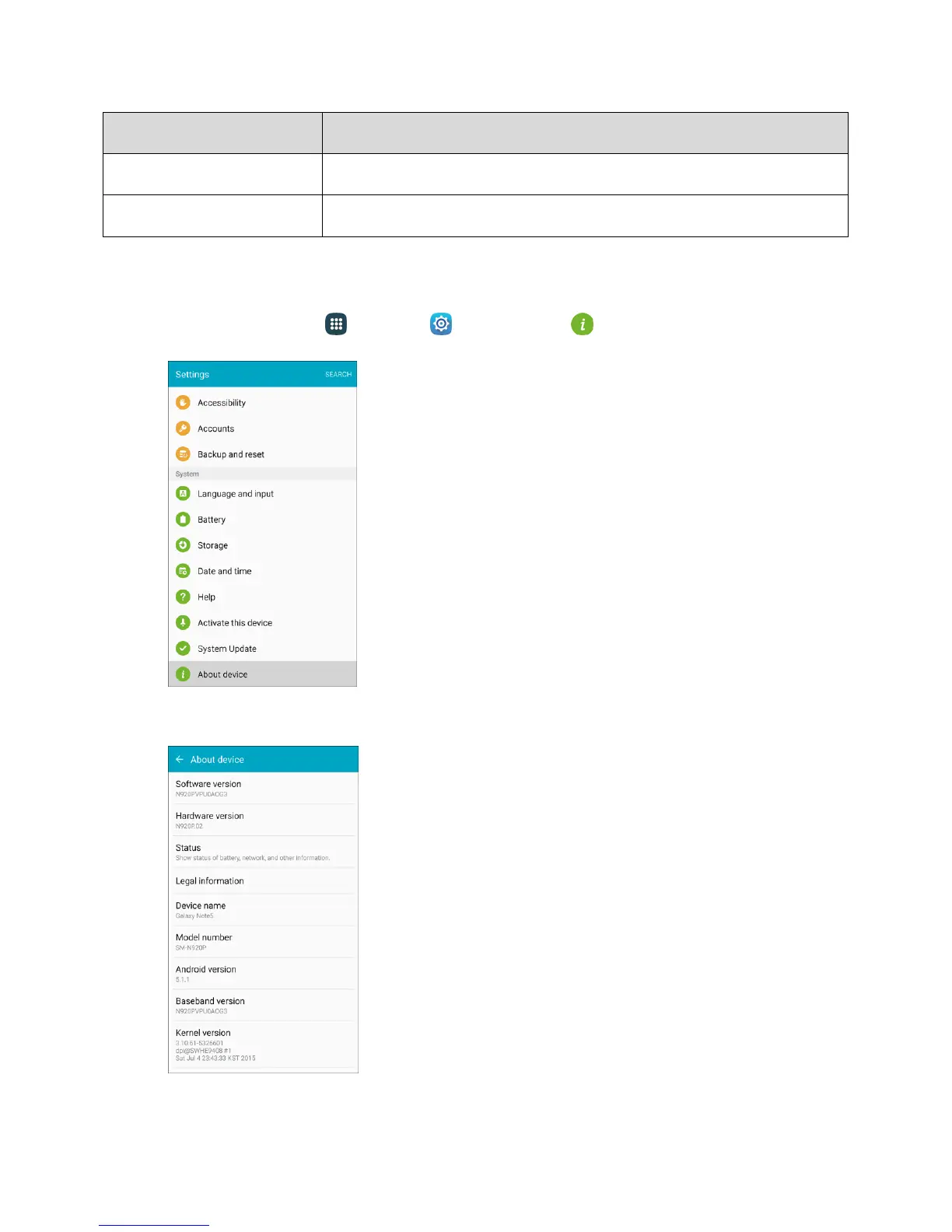 1. From home, tap Apps > Settings > About device .
