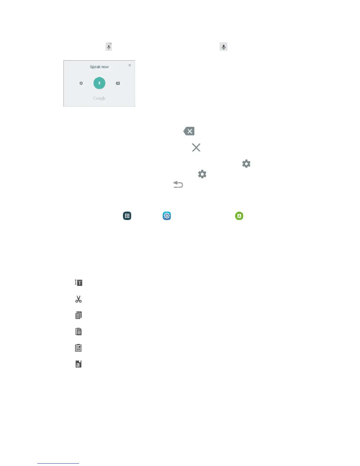 ■ From home, tap Apps > Settings > Language and input > Google voice typing.