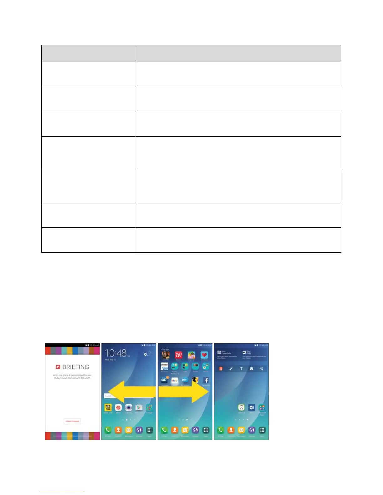 Note: The indicator above the primary shortcuts lets you know your current screen position.