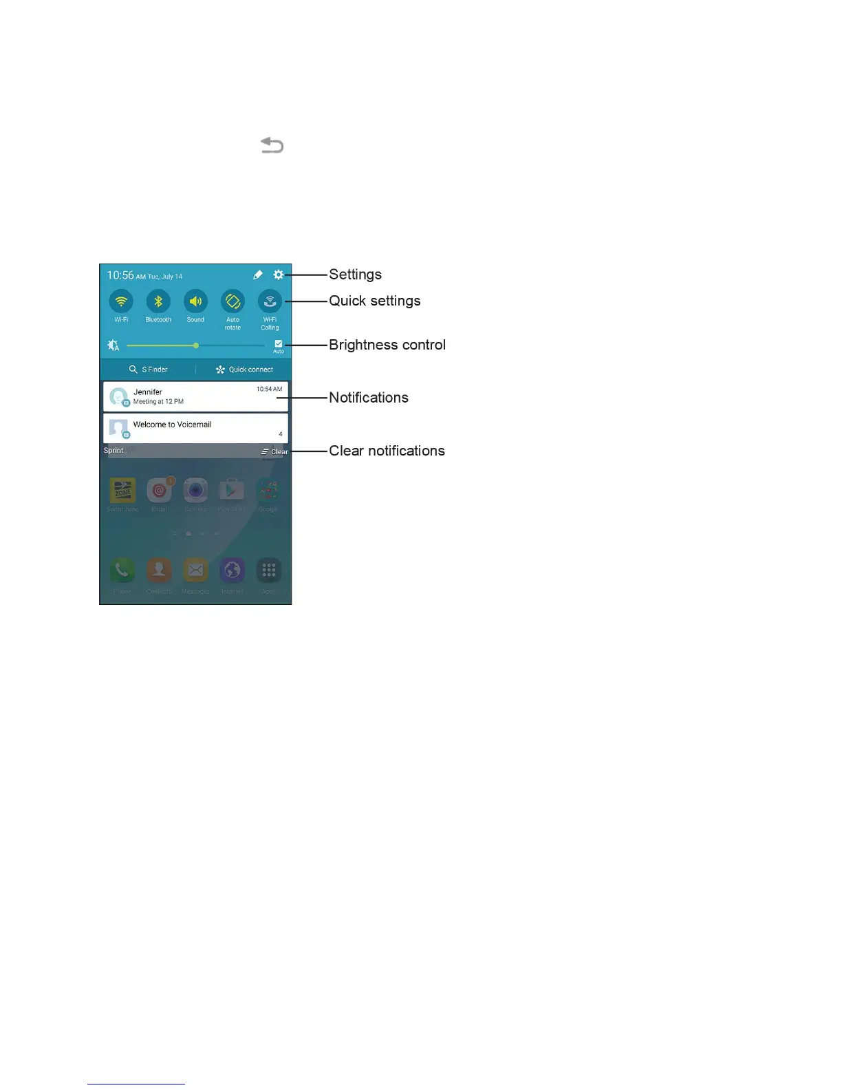 The notification panel gives you access to notifications, brightness control, settings, and the quick settings