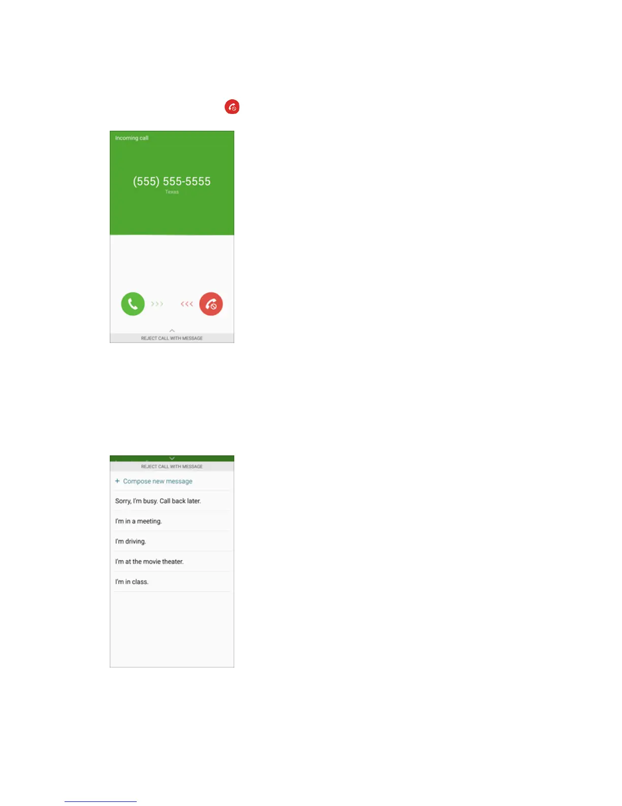1. When a call arrives, drag Reject call with message up from the bottom of the screen.