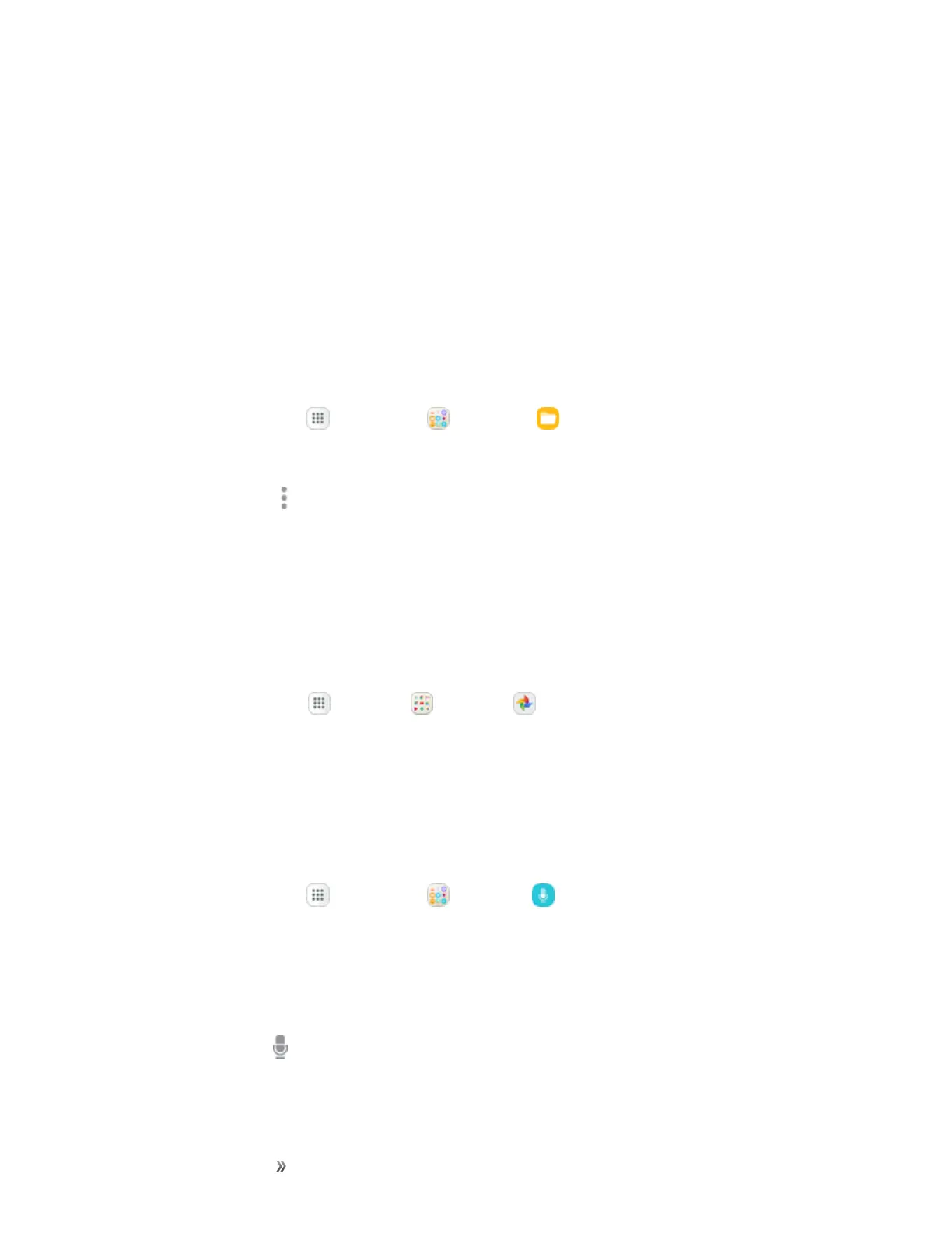 Fromhome,tapApps >Samsung >My Files .Thefollowingoptionsareavailable: