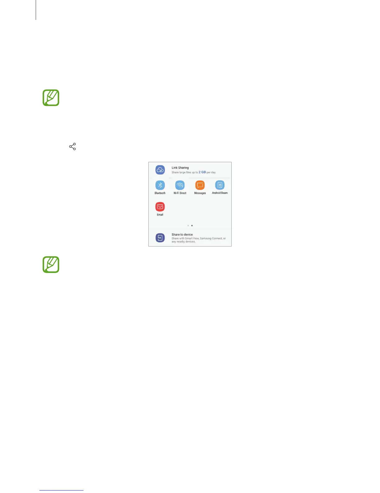 : Share large files. Upload files to the Samsung storage server and share