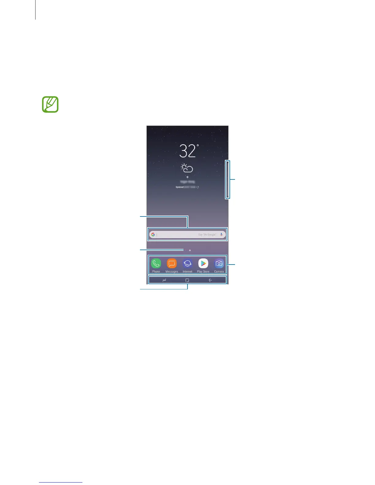 The Home screen is the starting point for accessing all of the device’s features. It displays