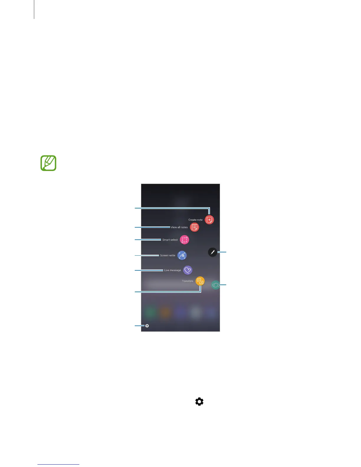 screen and press the S Pen button. You can also tap the Air command icon with the S Pen.