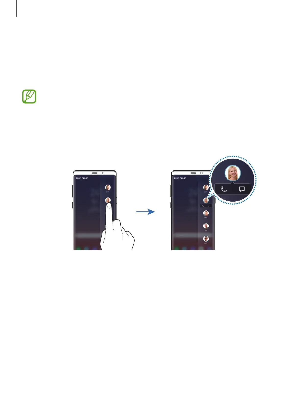 Open the People edge panel and tap a contact. The communication buttons will appear on