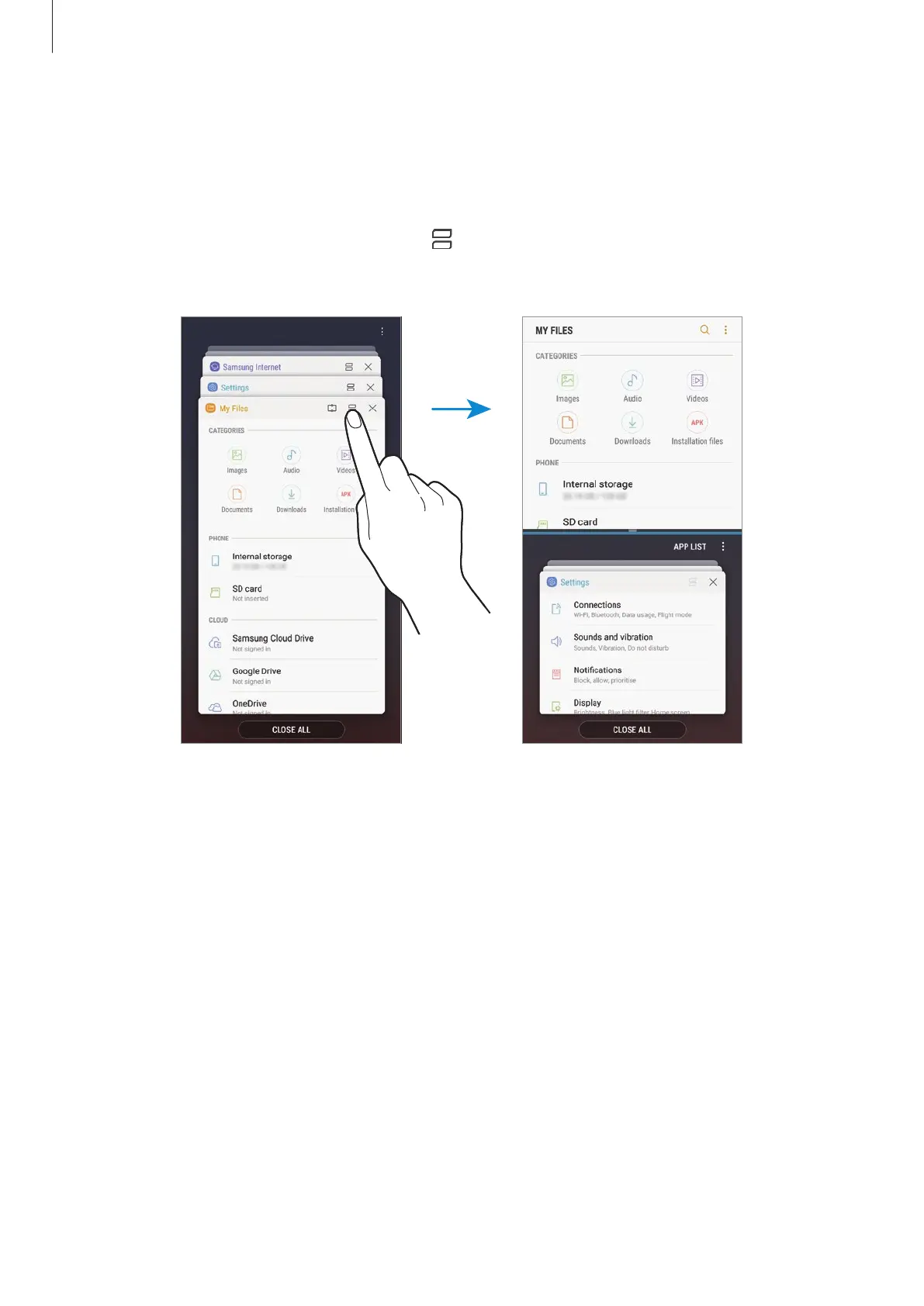 Tap the Recents button to open the list of recently used apps.