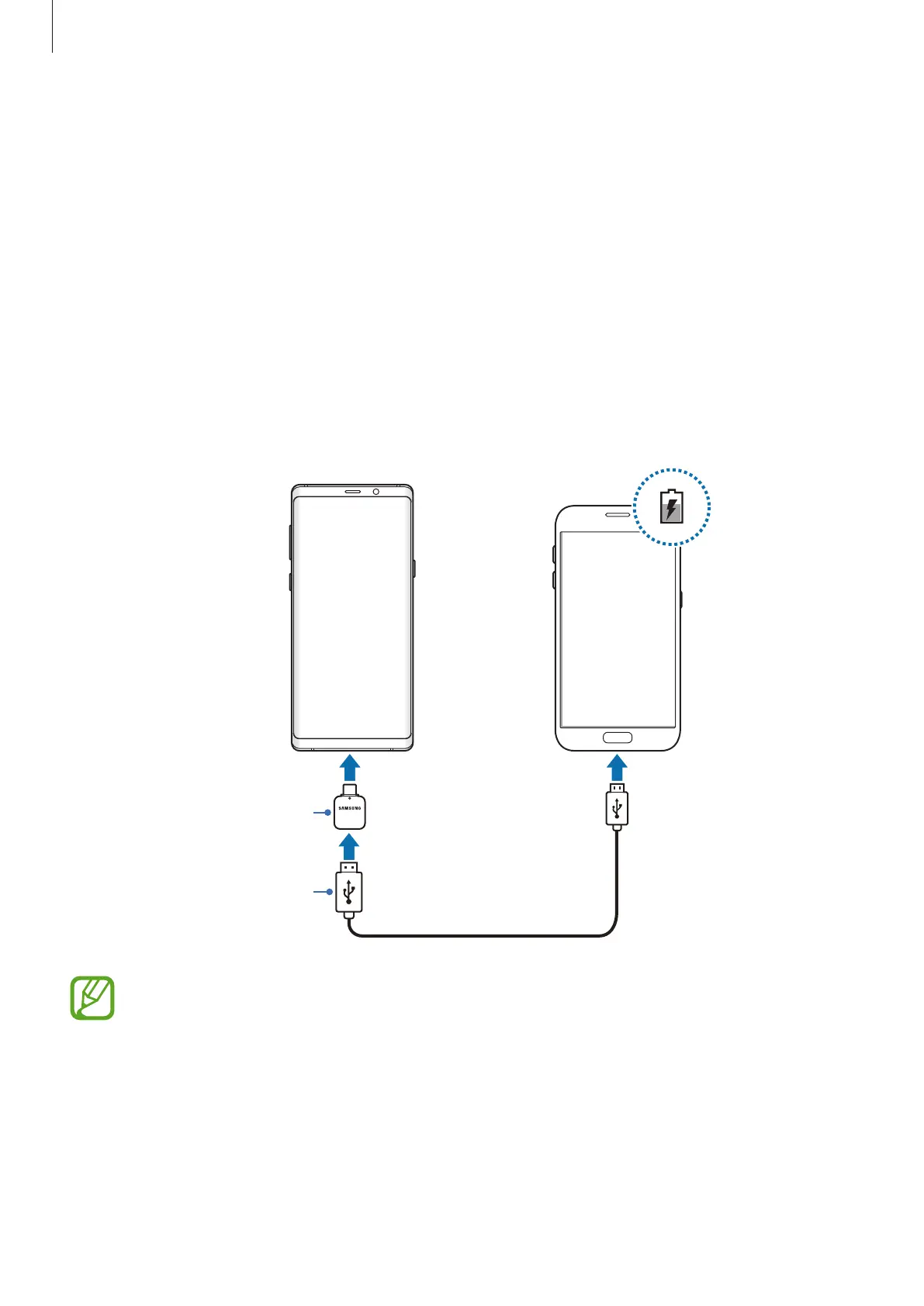 When charging starts, the battery charging icon will appear on the other device’s screen.
