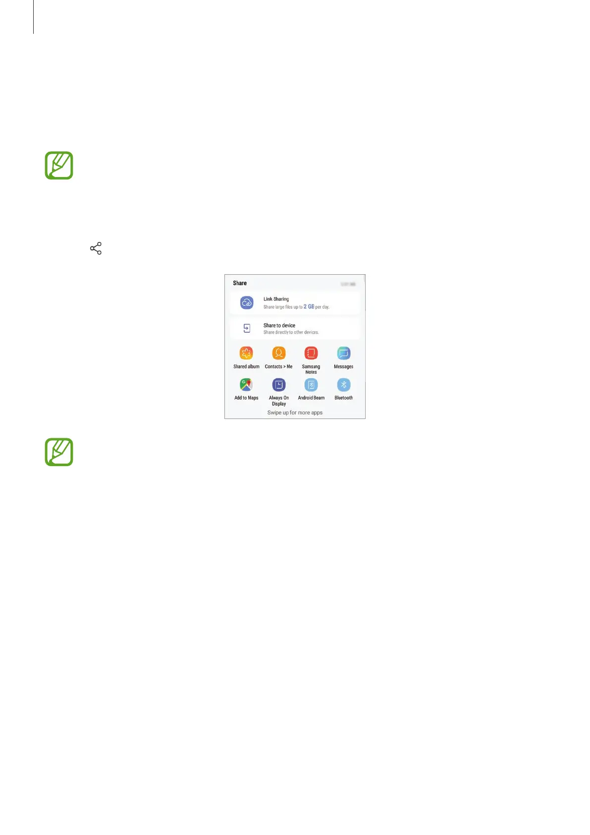 : Share large files. Upload files to the Samsung storage server and share