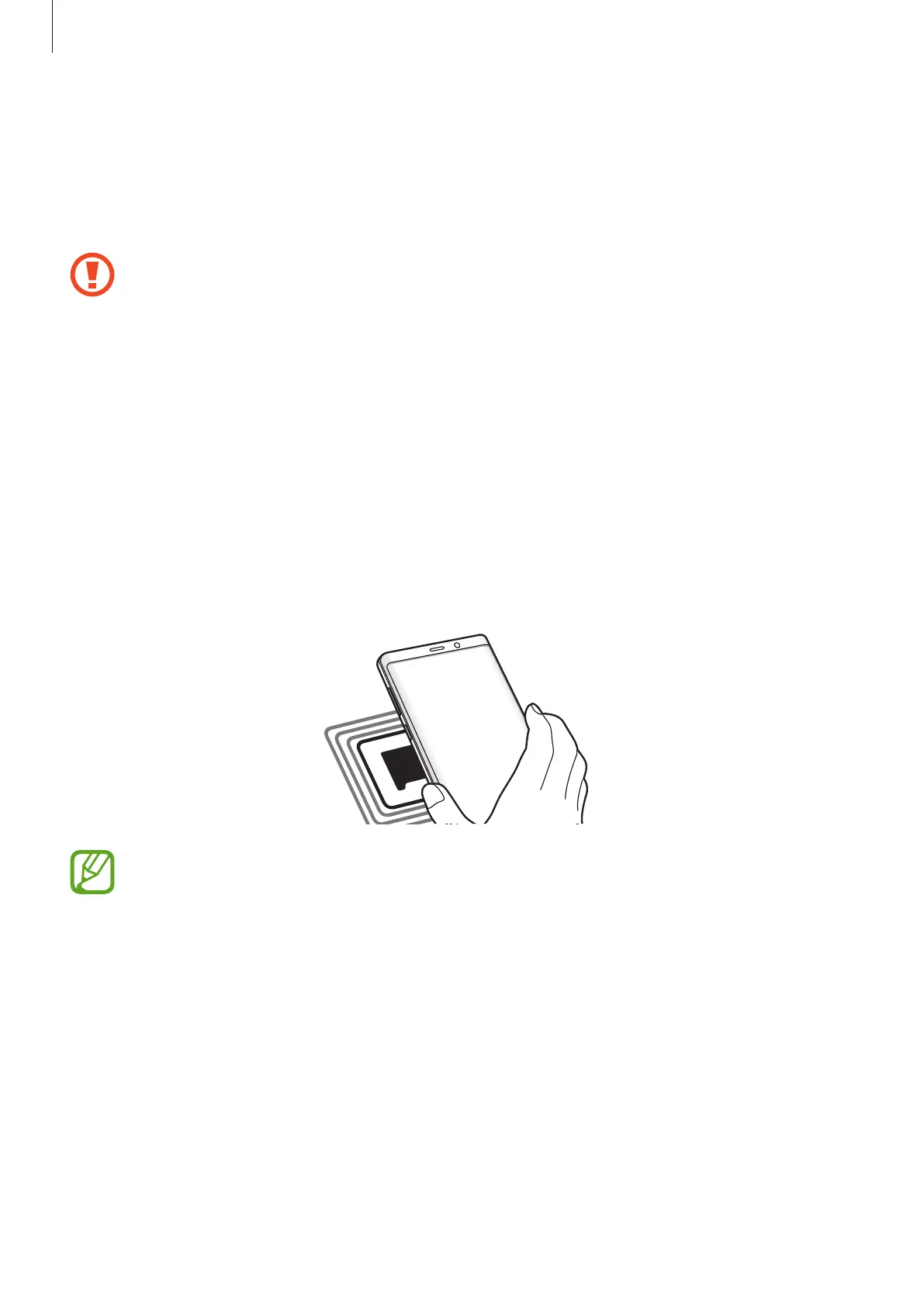 The device contains a built-in NFC antenna. Handle the device carefully to avoid