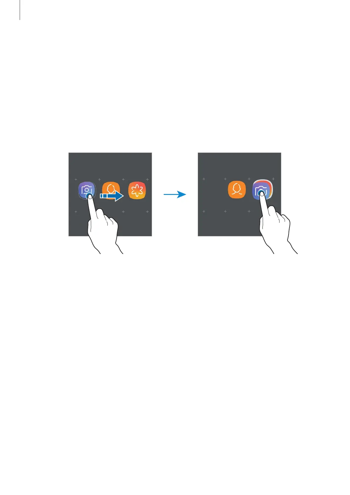 Tap and hold an app to drag it to a new location.