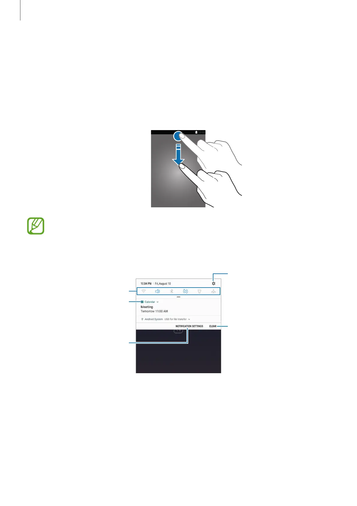 To open the notification panel, drag the status bar downwards. To close the notification panel,