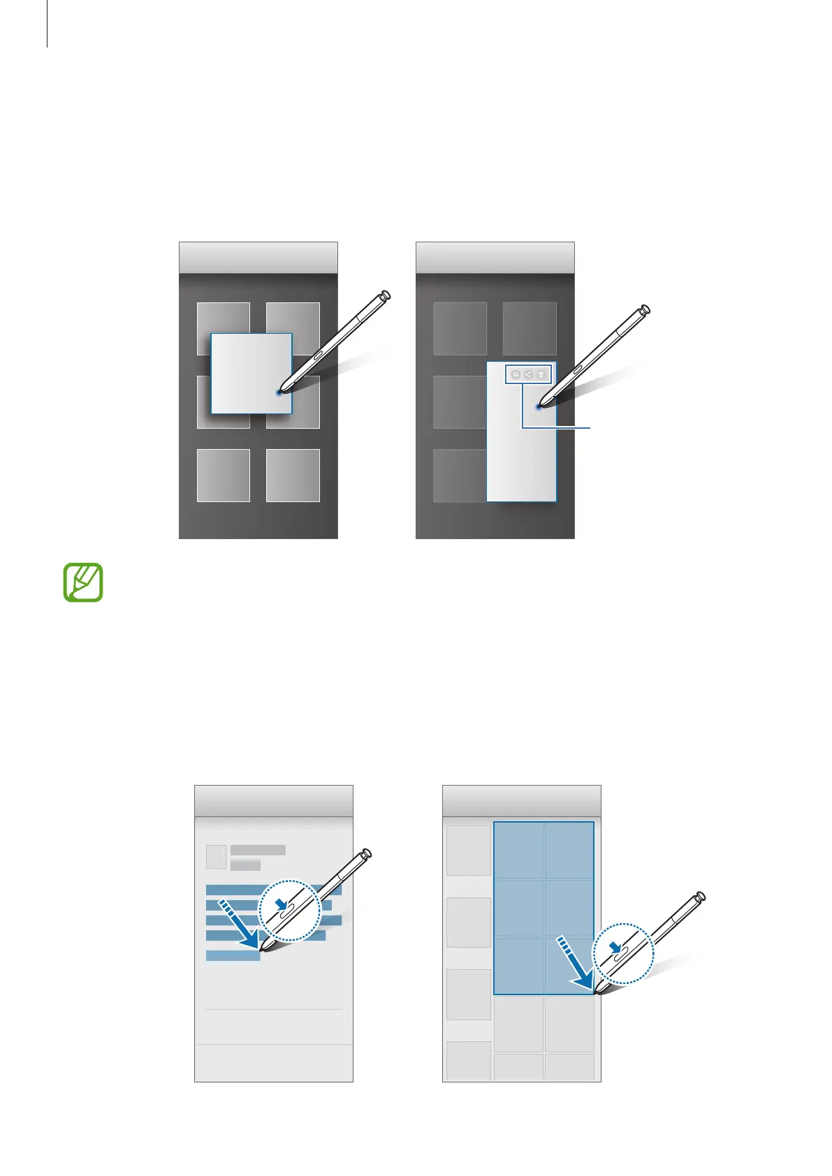 While pressing and holding the S Pen button, drag the S Pen over text or item lists to select
