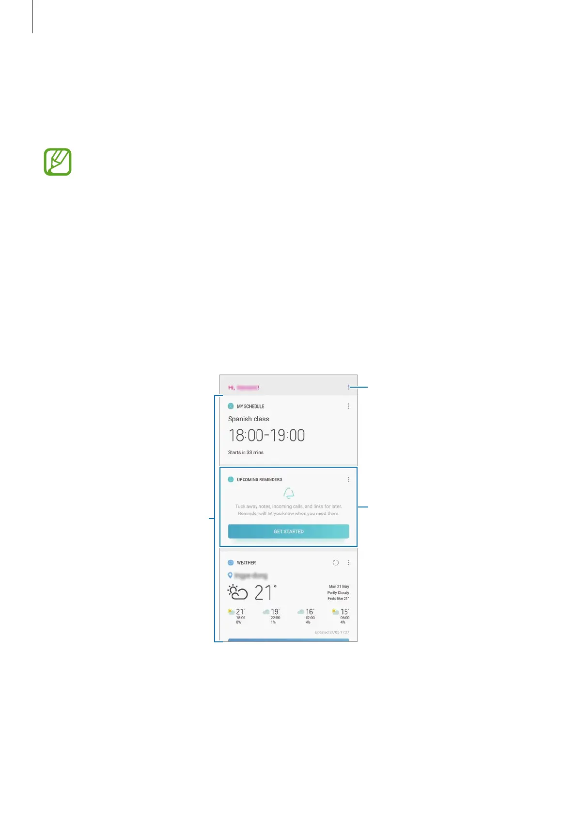 On the Bixby Home screen, you can view recommended services and information that Bixby