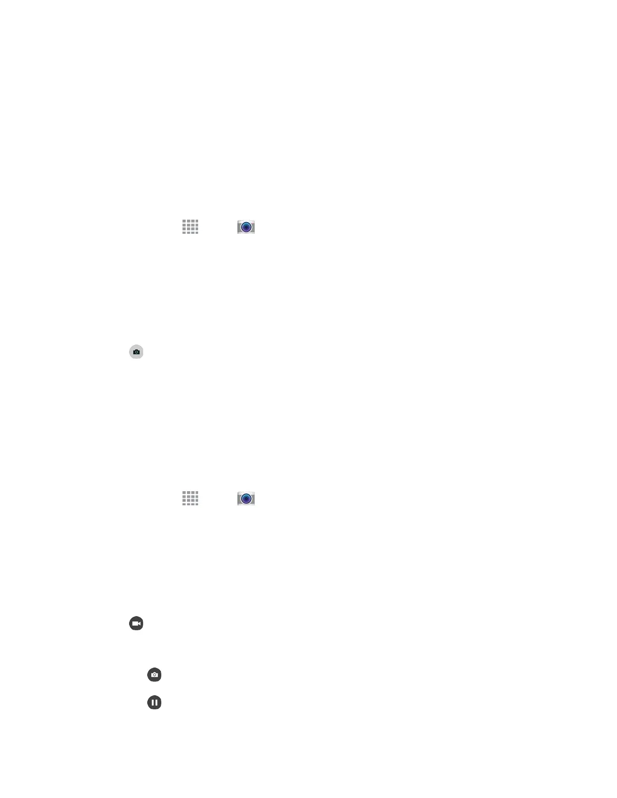 ● Mode: Tap to choose a shooting mode. The current mode displays on the camera screen.