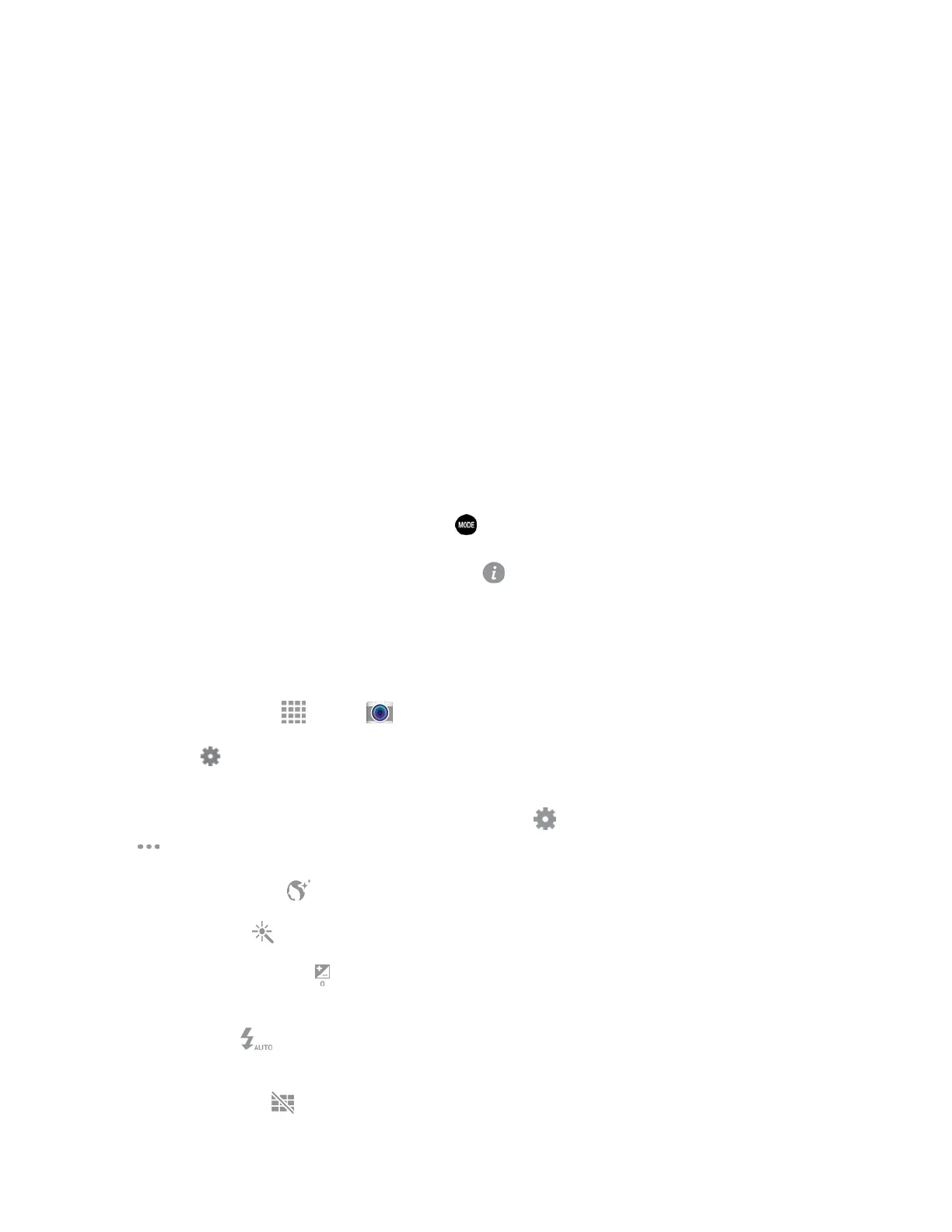 Note: Not all settings will be available at all times, depending on which camera is in use (front or back).