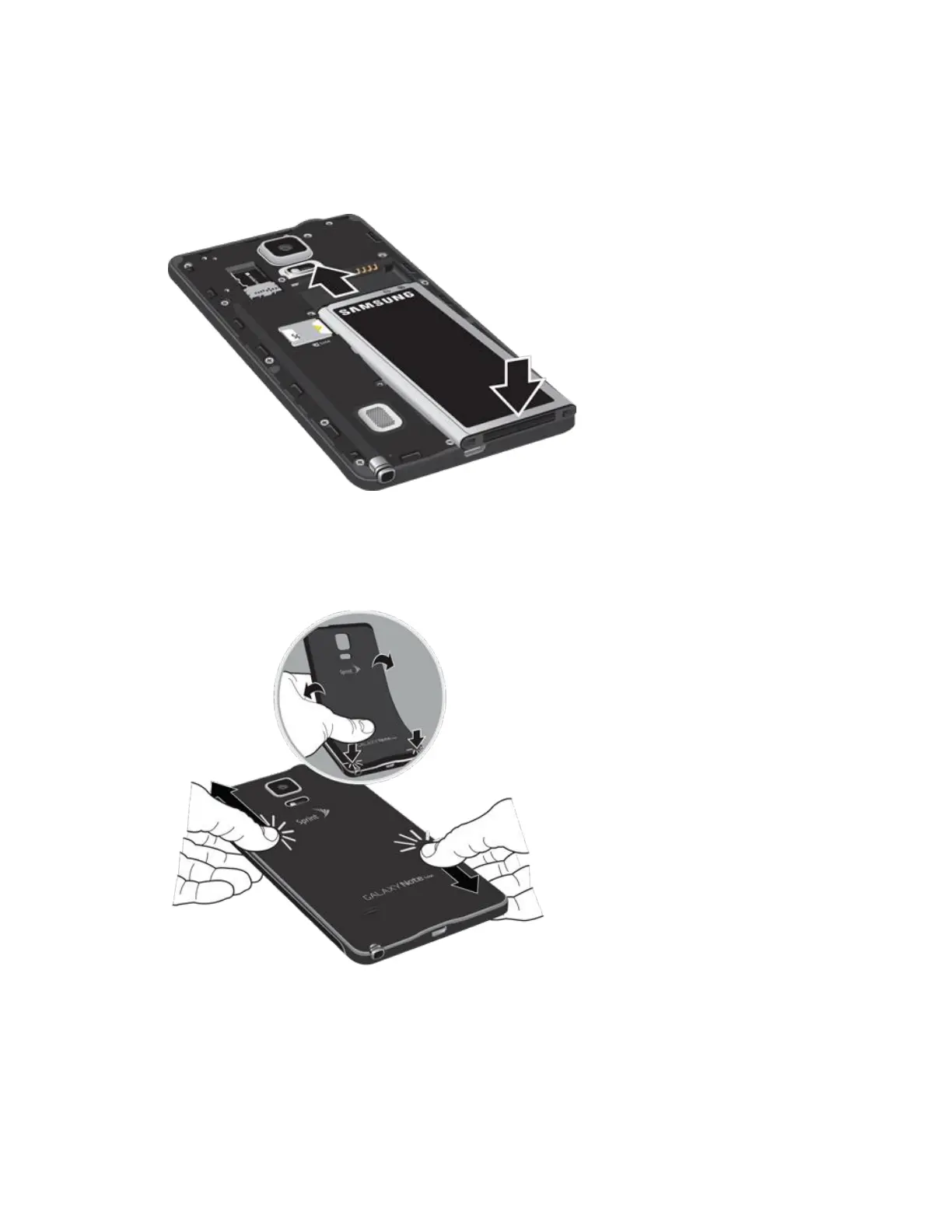 Insert the battery, aligning the gold contacts on the battery with the gold contacts on the phone,