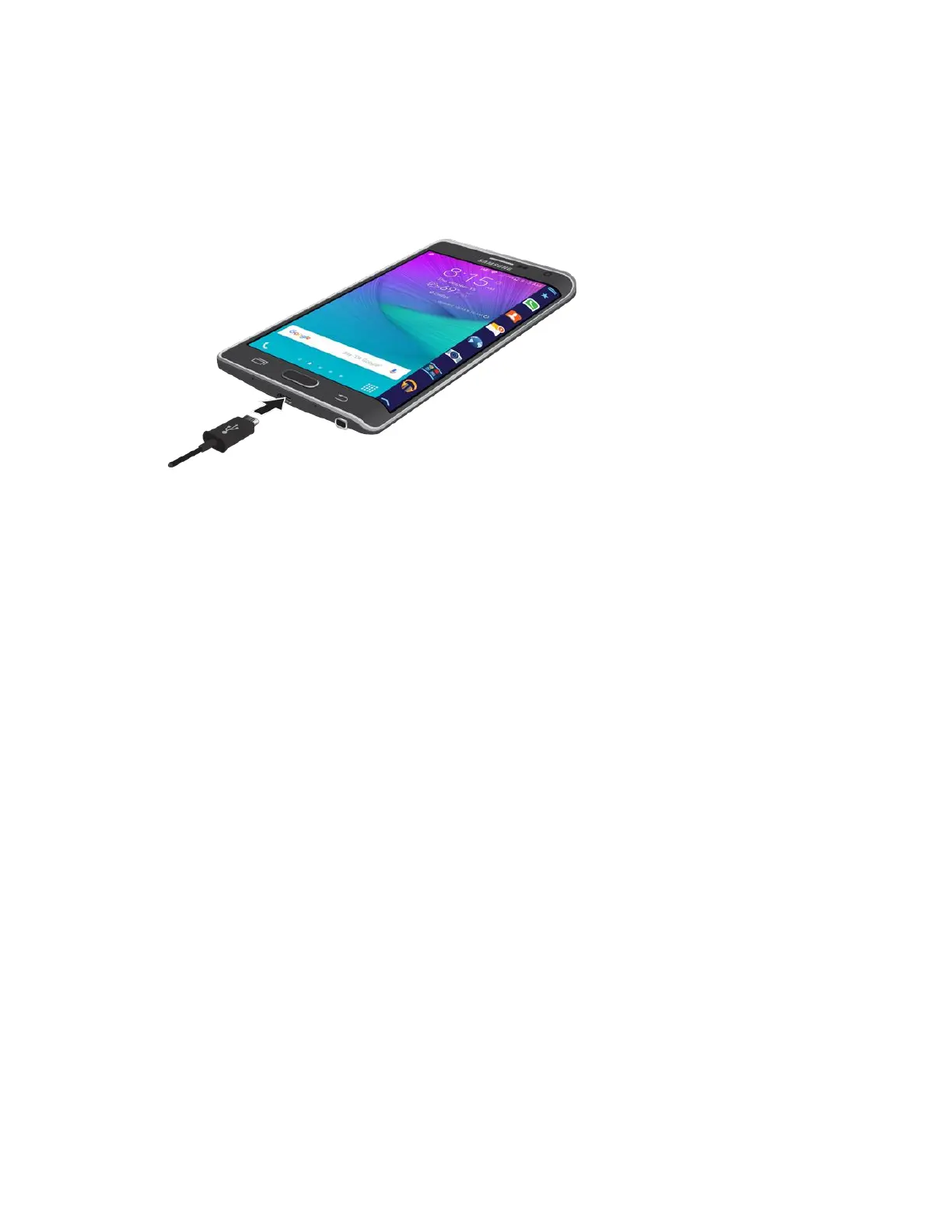 1. Plug the USB cable into the USB Charger/Accessory Port on the bottom of the phone.