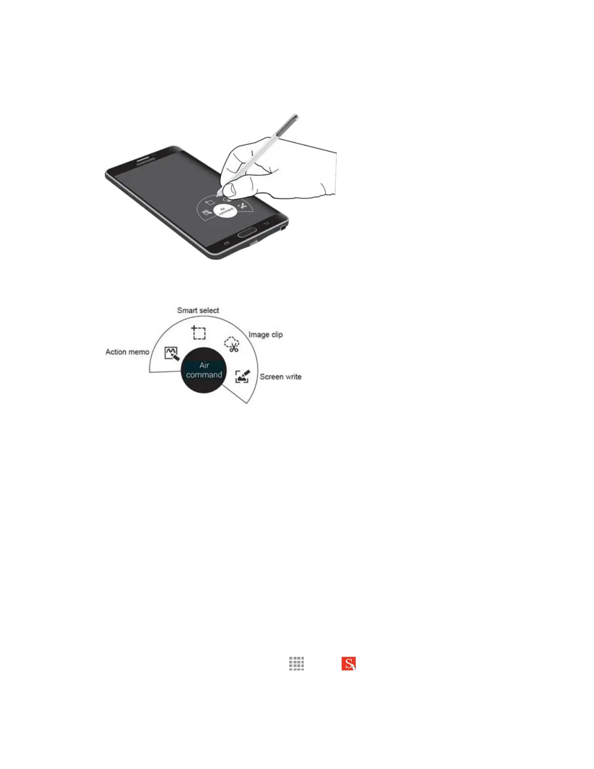 ■ To launch the Air command menu, remove the S Pen from the S Pen slot, hold the S Pen near
