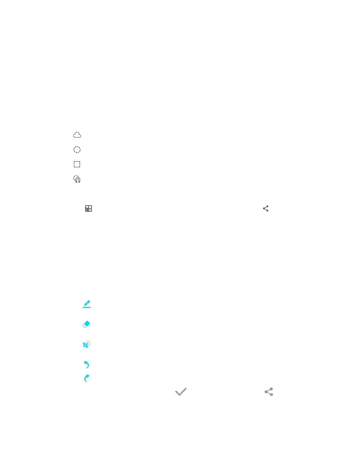 Eraser: Erase the writing or drawings on the screen shot. Tap the Eraser icon a