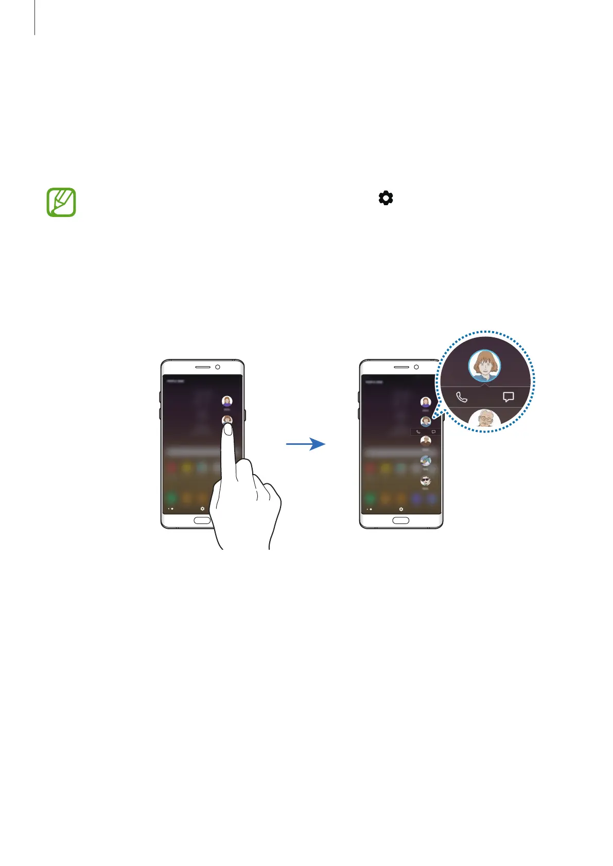 Open the People edge panel and tap a contact. The communication buttons will appear on