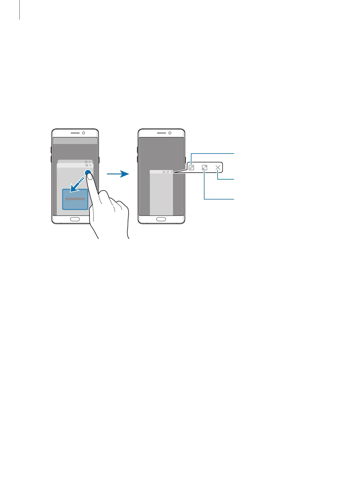 Swipe upwards or downwards, tap and hold an app window, and then drag it to