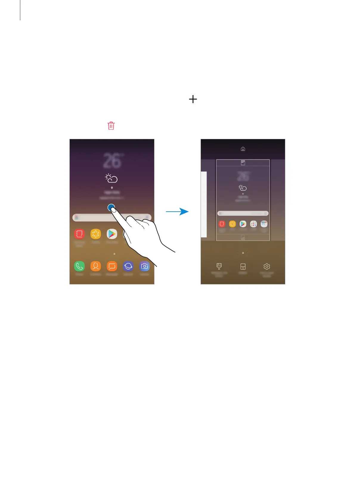 On the Home screen, tap and hold an empty area, or pinch your fingers together to access