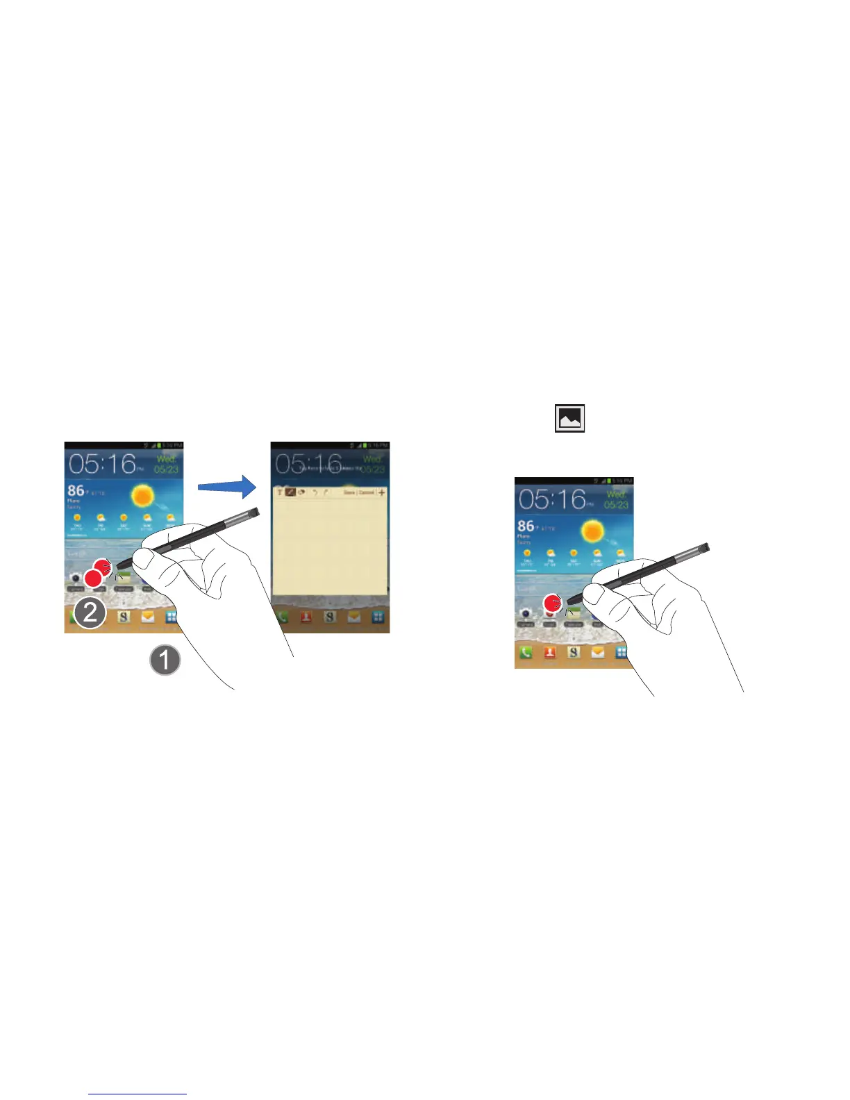 2. Touch and hold the S Pen anywhere on the screen.
