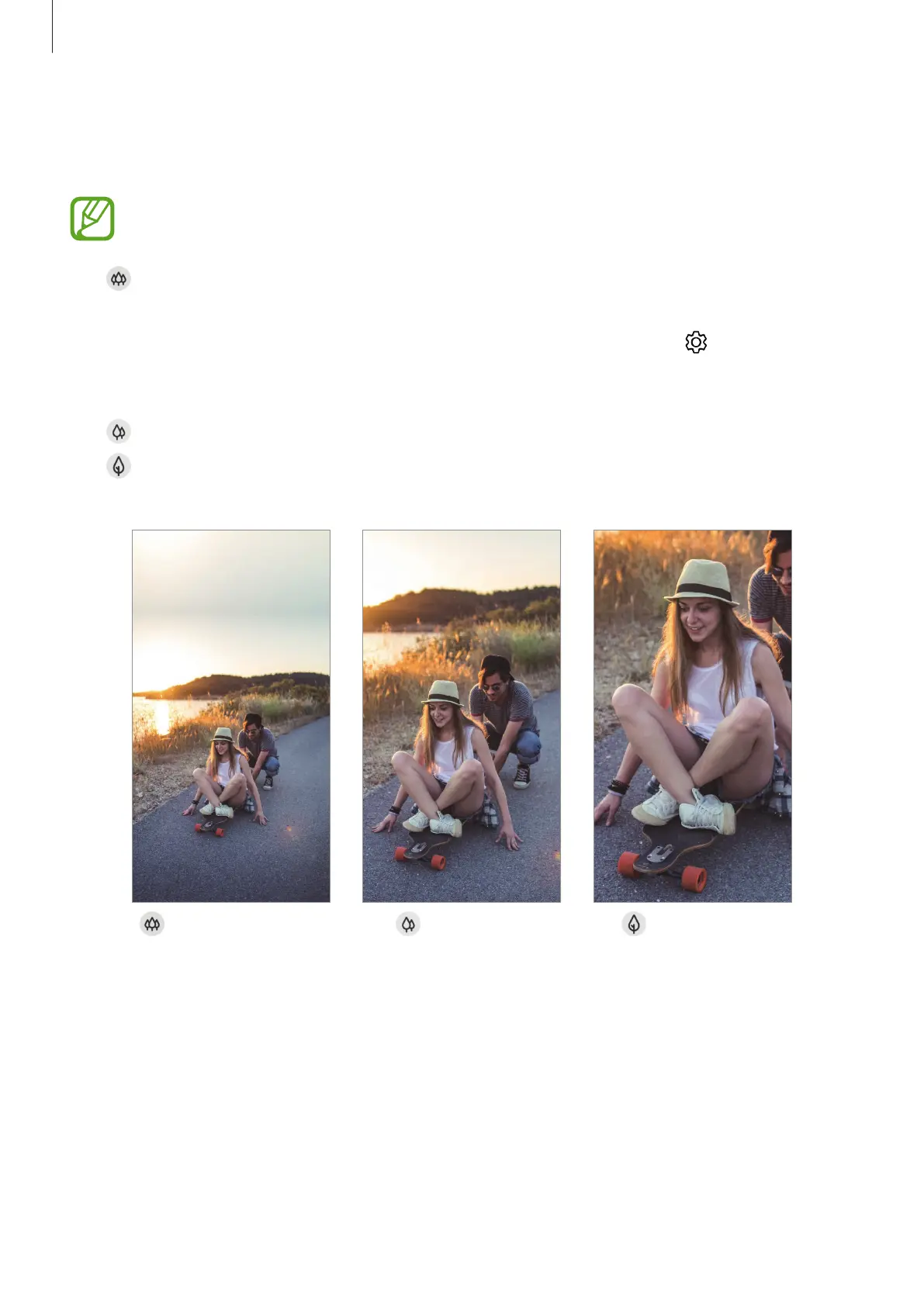 which look just like the actual view. Use this feature to take landscape photos.