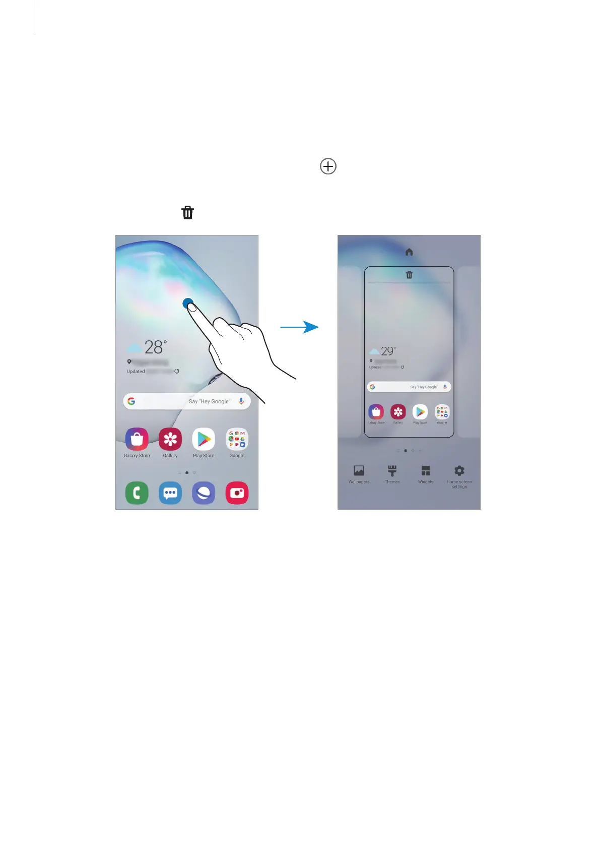 On the Home screen, tap and hold an empty area, or pinch your fingers together to access