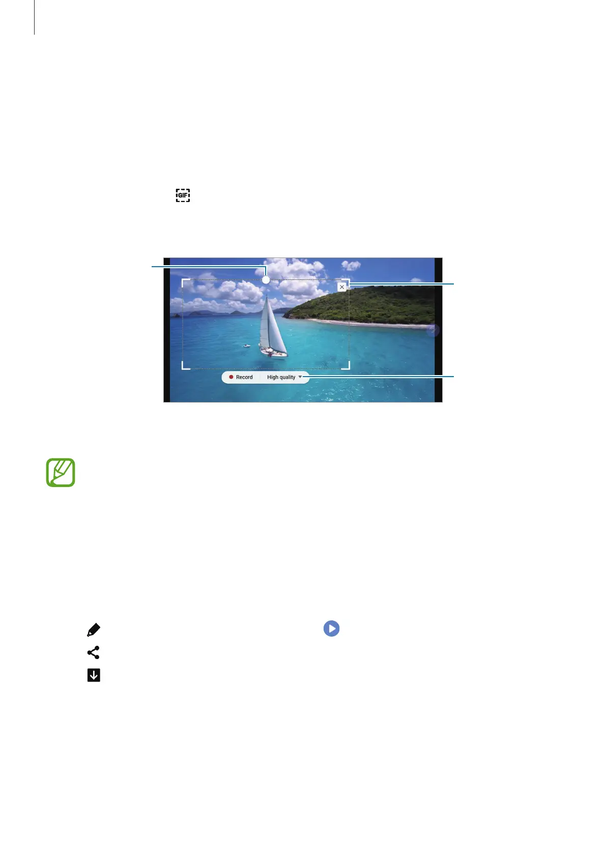 : Write or draw on the selected area. Tap to view the result before saving the file.