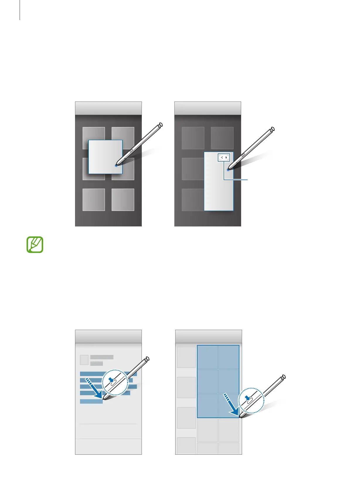 While pressing and holding the S Pen button, drag the S Pen over text or item lists to select